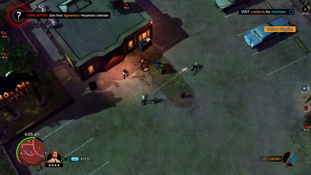 W przypadku American Fugitive mamy do czynienia z GTA w pierwotnej formie. Naszym bohaterem jest Will, któremu będziemy towarzyszyć podczas jego perypetii, patrząc na niego z góry. Niczym w GTA i GTA 2. Dlaczego więc to GTA nie jest? Pomijając oczywiste kwestie, mam wrażenie, że Rockstar Games i Take-Two Interactive preferują doić swoich klientów, zamiast dostarczyć im coś, w co faktycznie warto grać. Długi czas na stworzenie GTA VI nie wynika z tego, że gra ma być tak cudownie dopracowana, a raczej z tego, że GTA Online nadal zarabia dla nich krocie i to źródełko najpewniej zacznie schnąć po premierze GTA VI. Zamiast dostarczyć fajną, nawet małą grę, preferują dodawać kolejne pakiety pojazdów i broni do GTA Online, żeby kura znosząca złote jajka dawała ich jeszcze więcej. Na scenę wkracza Fallen Tree Games, które znane jest z niczego. American Fugitive to ich pierwsza nie-mobilna gra i jest zaskakująco dobra.